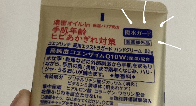 手荒れの原因は結局のところ水仕事なので、水から手を守ってくれる心強い存在です。ただし、しっとり感は弱めです。
